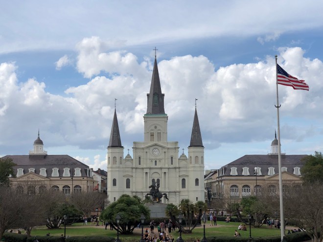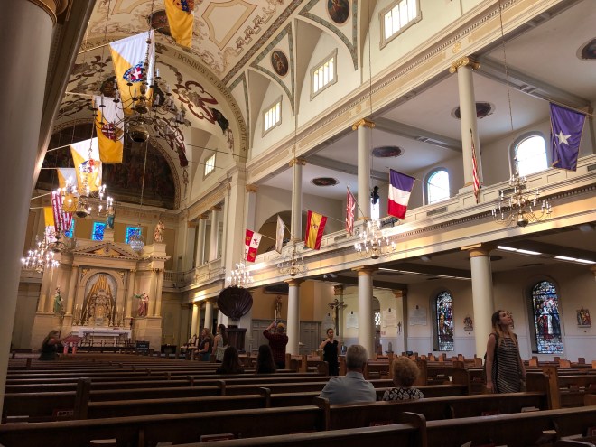 We walked into St. Louis Cathedral, the oldest cathedral in the United States-founded in 1720 by the French, and were immediately met by the candle offering. Finally, I can light a candle for my father in the South, remembering how many churches I tried to and failed in in Charleston. This cathedral certainly doesn’t compare to the ones in Europe but it was nonetheless serene.