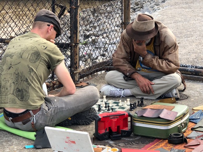 Upon reaching Esplanade Avenue, I knew we didn’t want to cross over as this is the eastern edge of the French Quarter and the beginning of the Faubourg Marigny area, an area that though gentrifying, wasn’t advisable for us to walk into. When we turned down Esplanade at first glance it was a lovely street, with a beautiful center divider planted with native bayou plants but it quickly turned a bit dicey feeling-with the camps of homeless people, many of them young hippie types, set up everywhere. The good news is we were not alone as others were walking along too but I made a quick turn back into the French Quarter on Decatur and found ourselves at the beginning of the French Market.