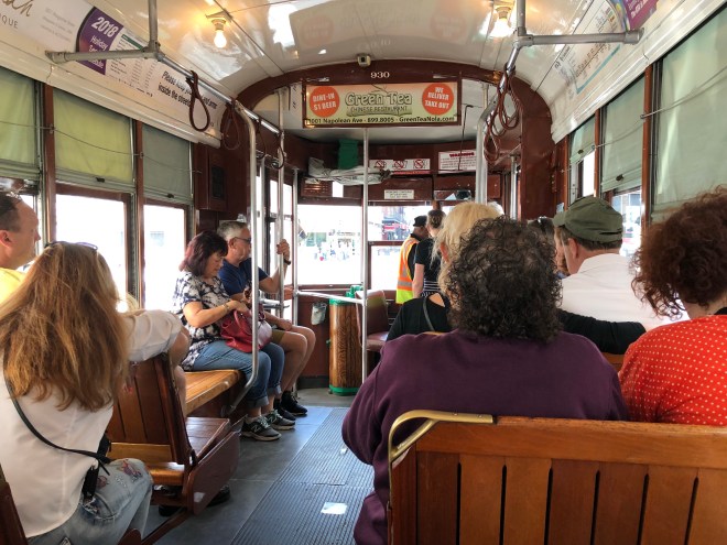 After finishing breakfast we walked a few blocks down Canal Street to grab the St. Charles streetcar to the Garden District. The St. Charles is the oldest continuously operated streetcar in the world, having been in operation since 1835 and was designated a National Historic Landmark in 2014.
