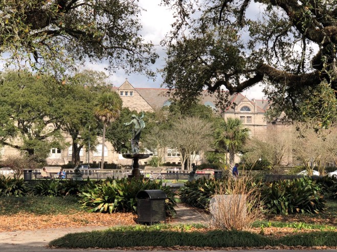 The sun was out and it was getting a bit warm so Jenny and I thought it would be nice to go sit in Audubon Park for a bit. Back onto the streetcar we rode up St Charles passing one enormous house after the other. All a bit different, each as equally lovely with only a few truly ostentatious ones scattered about.