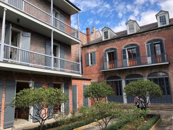Overly stuffed, we walked back to the hotel to pack our bags and set out in time to catch the first tour of the day at the historic Hermann-Grima House. The 6000 plus square foot house was built in 1831 for Samuel Hermann, the wealthiest man in New Orleans at the time. It was built right in the middle of the French Quarter, just off of Bourbon Street in the Federal Style-a most unusual style for New Orleans at the time, but both the size and style were done to attract the attention of townsfolk. Following the crash of the cotton market, the Hermamns had to sell the home to pay off looming debts and the second owners, the Grimma family, kept it until the 1920s. The house is furnished with many original pieces and gave a good perspective on what life was like in those days, both as a wealthy family and as a slave. The docent was quite good and gave us a lot of historical background on New Orleans at the time, including the history of the large percentage of free colored people, the code noir, and the slave trade.