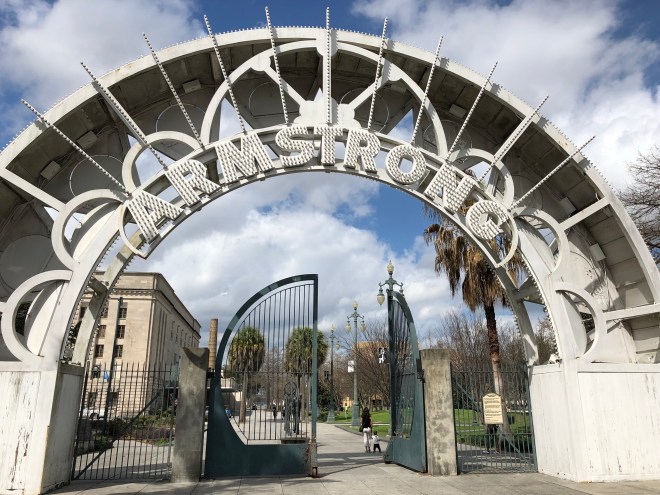 We then happened upon the offices of the National Park Service’s headquarters for the New Orleans Jazz National Historical Park, and while I had forgotten to grab Jenny’s stamp book before we left, we went inside and stamped a sheet to add to our collection. We had just missed a group playing African drums inside but one of the ladies was still there and letting people know that we could hear the drums later at 3:00 at Congo Square in Louis Armstrong Park. She also issued a stern warning to us-make sure we don’t go down any dark roads, to stay with the masses of people-something else I had already read up on before we left home.
