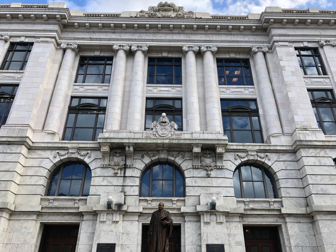 Upon exiting the library, Jenny wondered aloud what there was to see in the fourth floor “coat room” the guard had told us about. Cracking up, I told her it was not the coat room he had suggested we go see, it was the court room! Too funny! After having a good laugh, we stood in the doorway and Jenny very astutely pointed out how intimidating it must be standing there with those nine judges, in a semicircle, looking down on you.