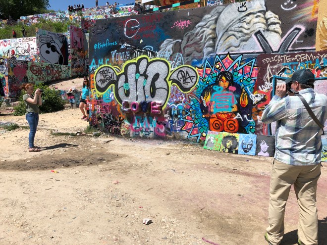 We enjoyed the walk back along the river stopping to pay homage, this time, to Stevie Ray Vaughn. There was a music festival going on riverside so we danced down the trail on our way to our final stop-the Congress Street Bridge.