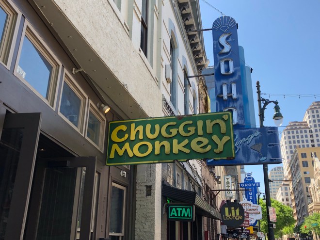 The donuts were actually quite good, with the preference going to the simpler of the four we tried. We ranked them third or fourth in our highly scientific, “Best Ever Donut Survey.” After our gluttony almost got the better of us, we went to fetch Billy at the Chuggin Monkey and head to the hotel. The band was ripping when we got there and they were every bit as good as Billy had assured me in his texts.