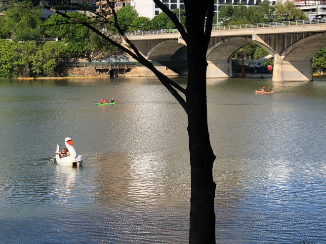 Upon dropping our bags, soothing Jenny’s blistered feet and allowing Billy a nap, we had little time before dinner (yes, another meal!). I left Jenny and Billy to finish their chilaxing and went down to the terrace that overlooks Lady Bird Lake to have a glass of wine and enjoy the absolutely postcard perfect weather Austin was having. After wandering the streets for near to five miles, the time sitting and watching all the kayakers, SUPers, and paddle boaters was enjoyable.