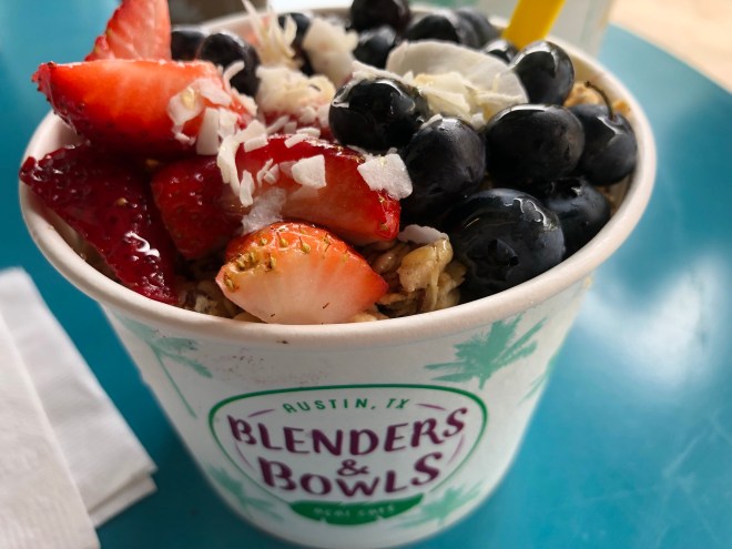 Today was a very late start-we didn’t make it out the door until 10:30, even though we were all asleep by 9:00 last night. Jenny chose the breakfast spot this morning-Blenders and Bowls, the top spot in Austin to get an Açaí bowl. The bowls were delicious, topped with fresh berries, honey and hemp granola and almost as good as the ones we had for breakfast every morning when we were in LA!