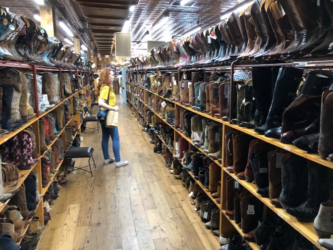 We stopped at Allen’s boots, one of the most famous booteries in Austin. I just love the smell of leather and wow, was the inventory impressive, as Jenny said, “It certainly blows Allred’s away.”