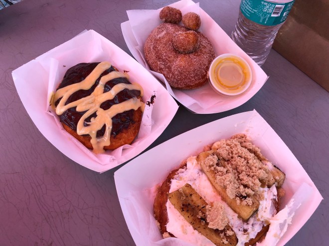 The donut place was an old airstream that has been parked in a lot, next to a taco trailer (why didn’t we know about this before?), set up with picnic tables and umbrellas, with lights hanging above-so cute and so Austin. The donut menu was extensive, about 20 to chose from, and all were made to order. So I don’t think I can accurately explain how absolutely sinfully decadent these donuts were, unlike any we have ever had, and they easily knocked Voodoo out of contention for top three and may almost be the best ever-they were that off the charts! I am not even too sure of the ones we ordered but man oh man…heaven on earth!