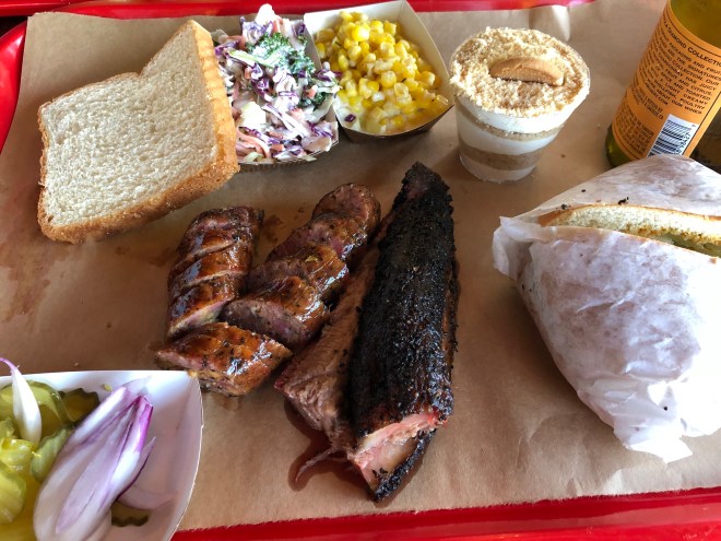 We had been in Texas and had yet to eat Tex-Mex or BBQ, so after some discussion we decided it had to be BBQ for dinner. Franklins has been suggested but they don’t do dinner, so we relied on Trip Advisor to help us out. Black’s BBQ was about half mile away, good solid reviews but didn’t take reservations so figuring we could beat the crowds we headed out but with an initial stop at the Yeti Bar.
