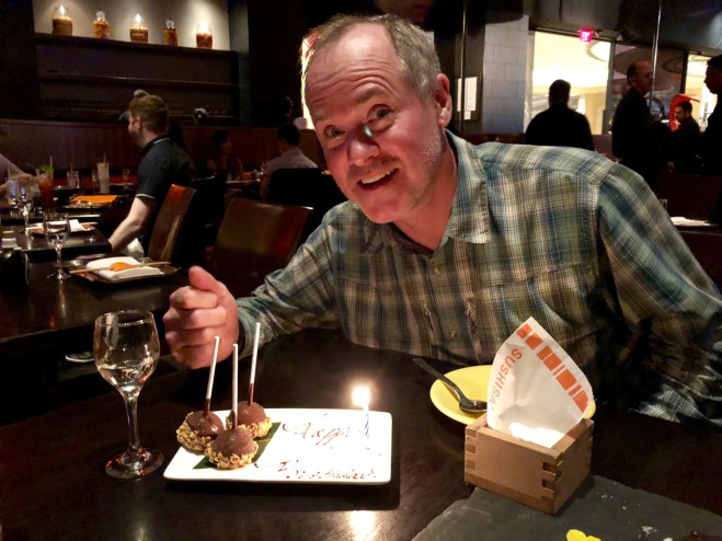 When we did our cross country drive to Arizona last summer, the return drive had us going through Utah where we stayed a wonderful night in Moab. We were all enchanted by the red rock country, Jenny especially, and spoke of the need to return and explore it more. Since we had an extra long weekend over Memorial Day, we decided to head back to red rock country via a nonstop into Vegas. The only catch? We would have to travel on Billy’s birthday. The good news was that we would be landing early enough to enjoy a meal at one of the excellent restaurants in Vegas-sushi we decided-Billy’s favorite!
