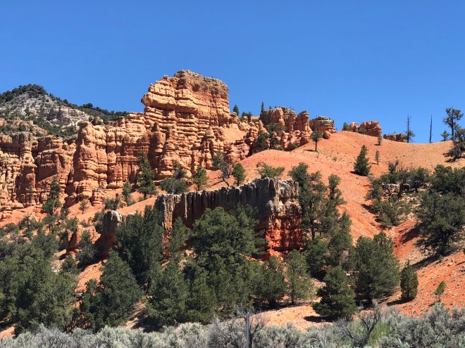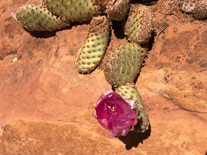 We passed bright yellow false sunflowers, wild purple lupine and pink geraniums, dainty white rock daisies and prickly pear cactus with fuchsia flowers. The greenery was of a variety unfamiliar to me, save for the pine trees and junipers. Off to both sides were views out over equally impressive canyons-all carved from the force of water.