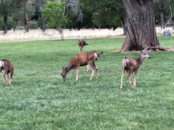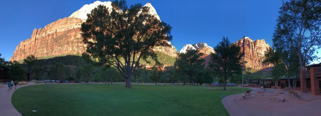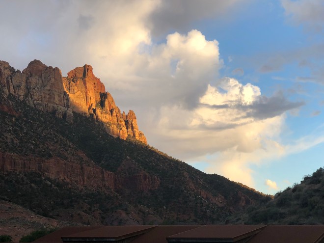 Dinner was at the lodge, thank goodness I had made a reservation ahead of time because people were being turned away and there is no other option in the park-you have to drive to Springdale. Dinner was good-but the view sitting outside and the company was what really made it spectacular.