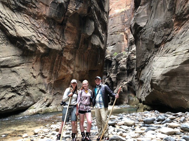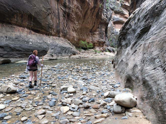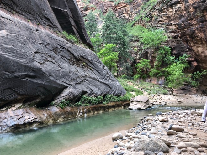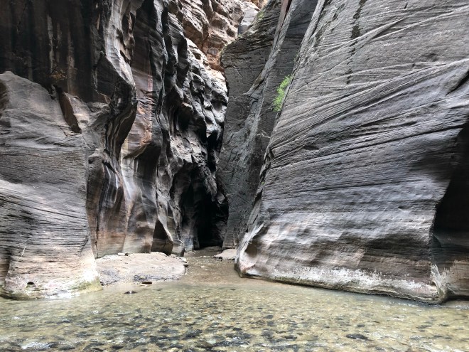 On the return, we were astounded by the numbers of people now in the Narrows-it was truly disgusting. We literally passed hundreds and hundreds of people. We saw people trying to hike it in flip flops and bare feet and people carrying their kids (who had regular sparkly street shoes on)-outrageous! We were so thankful we went early and got out when we did. We would have had a completely different experience otherwise!