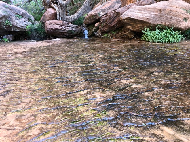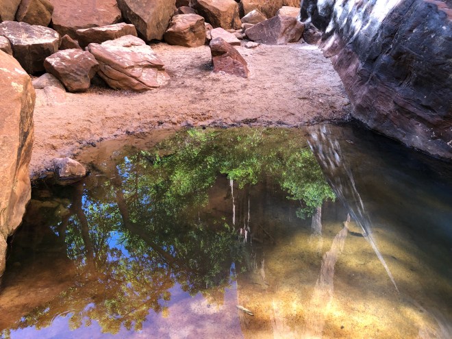 The pool reflected the cliffs from way across the other side of the canyon just splendidly, while the sound of the trickling water created a zen like atmosphere that one could sit down and enjoy if not for having to adhere to a blasted schedule!