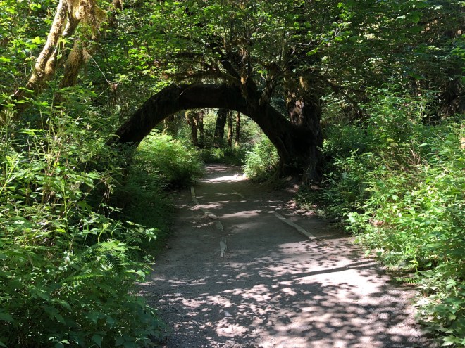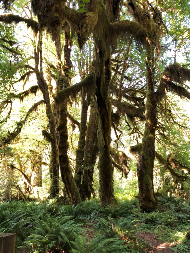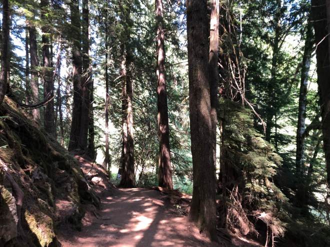 When we arrived at the visitor center, it was ridiculously busy but we found a parking spot, checked out the map and set out on combining two different trails for a total of a 2.5 mile hike. The hiking here was a bit different in that the forest was a bit more open and it allowed for a greater perspective on the actual environment than at Lake Quinault.