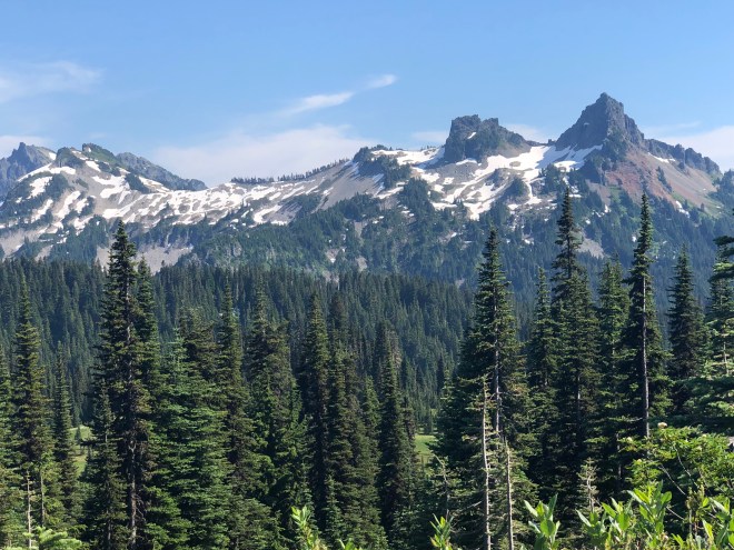 Staring out at the forested mountains, Jenny said this is what she thought Oregon and Washington would look like and this is exactly why she chose this area to travel to. “A day in the mountains is like a cleansing of your soul,” my too-wise daughter announced. At one point, Jenny spotted a marmot running through the meadows and then I spotted another one. “If you want to travel some place beautiful, go where the marmots live,” Jenny declared.