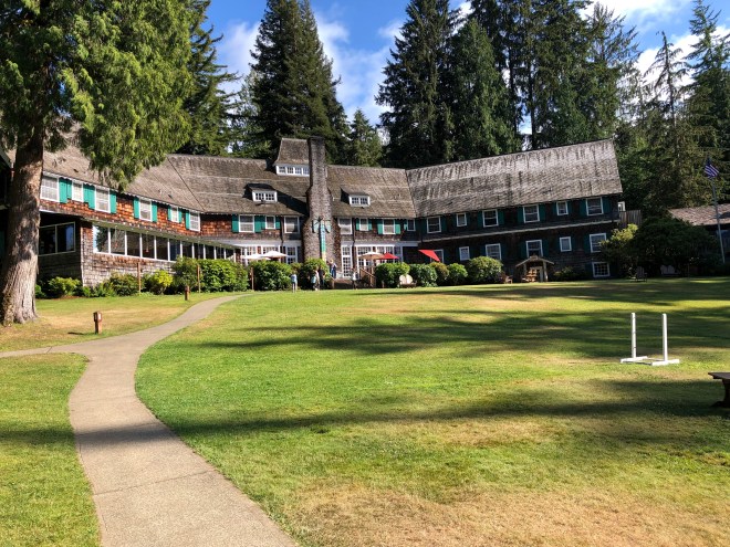 After we headed to the hotel, our most extravagant stay of our trip-the Lake Quinault Hotel. It is a beautiful old lodge, one of the national park originals that sits right on the shore of Lake Quinault. The inside is very arts and crafts while the outside is a bit rustic woodsy, but it is well decorated and has many traditional native items in and around on display.