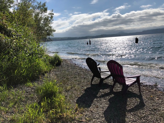After our hike, we returned to the hotel and spent some time relaxing in adirondack chairs on the shore of the lake. It’s amazing how dependent we are on our sight but it is equally amazing how without it we don’t even realize how much our other senses have absorbed. It is also amazing how much our brain processes it all. Sitting in an adirondack chair on the lakeshore, I leaned my head back and closed my eyes. I was immediately transported to another time years ago-the gentle breeze caressing my skin, the reverberating of the wind in my ears, the tender touch of the sun warming my skin, the music of the waves slowly breaking on shore, brought me to a time of such comfortable familiarity even while I sat on the shores of a distant land.