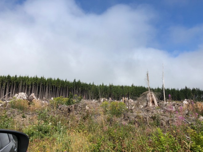 From there until the national park the drive was unremarkable if not a bit depressing passing huge swaths of clear cut forests. Some were on the road to recovery, some looked fairly recently cleared and others looked to have been cut decades ago by the height of the new growth trees. I know this area has a long long history with the timber industry, and I do not pretend to know better one way or the other, but it feels a tragedy now to see such violations against nature.
