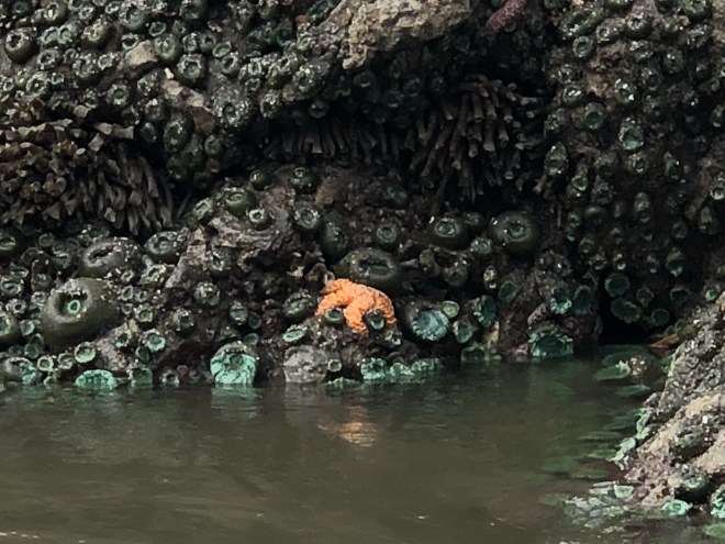 We continued on to where it looked like there was easier access to some more rocks and sure enough we spotted a second sea star, this time an ochre color.