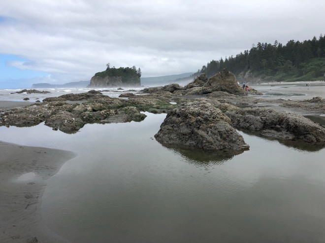 Our first stop was the ranger station closest to the marine part of Olympic. The ranger here gave us some different information than the other ranger, recommending Ruby Beach as the place to go for beauty and for starfish. The family we sat with last night told us they had spent some time at some of the tide pools near Ruby but never saw a starfish which left us concerned. As luck would have it though, we had perfect timing for the tide pools, because low tide was at 11:22 AM and it was almost a negative tide.