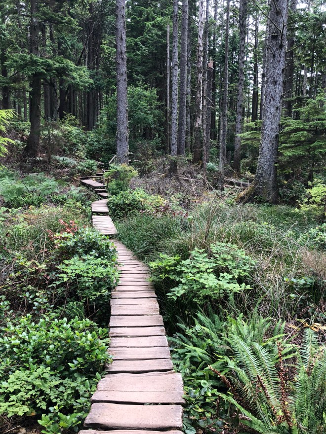 We continued our drive on to Cape Flattery where we parked and set out on the mile walk, through beautiful woods, along raised boardwalks, past ancient trees and listened as the sound of the ocean grew closer.
