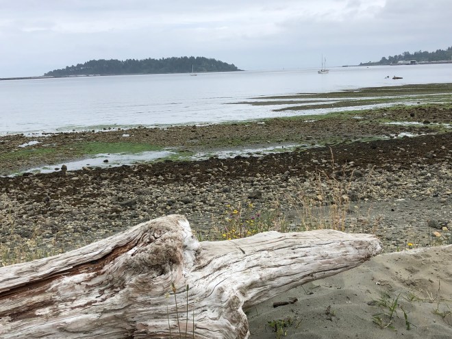 We spent about two plus hours down on the beach so when lunch time approached, and knowing there was nothing available anywhere close, I ran back up to the car and grabbed the two packages of salami, cheese and crackers we had picked up plus the bag of cherries we got on our way out of Ashcroft and enjoyed a picnic lunch, sitting on a drift log overlooking the gorgeous Washington coastline-just perfect!