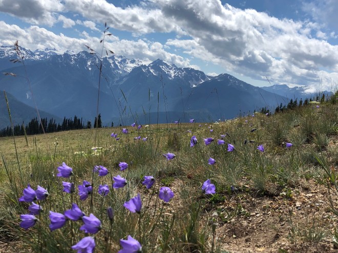 As we drove into Olympia National Forest, it was like someone unplugged the mower and lined the highway with blue hydrangeas!