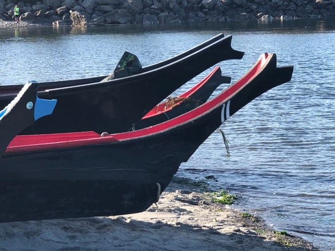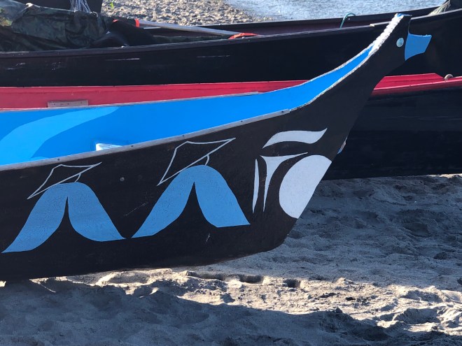 Back down the mountain, we parked and walked back down to the beach to see if more canoes had come in. There were about 15 lined up, with three more in sight, making their way towards shore.