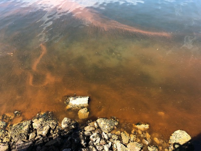 Some sort of algae bloom near the shore when we returned. It wasn’t there yesterday.