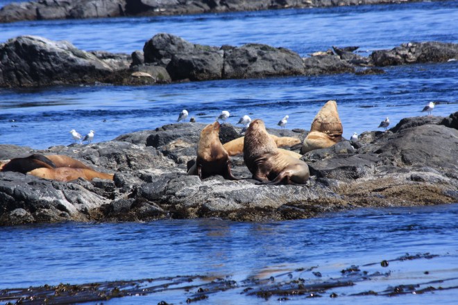 We lingered for about thirty minutes in the humpback’s vicinity and continued to enjoy watching them as they surfaced and dove down. The captain decided to move on to an area known as Race Rocks, an ecological reserve where we saw humungous sea lions lazing about sunning themselves but no other whales.