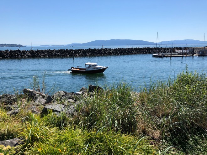 Natalie chose the restaurant for lunch today, a beautiful spot right on the harbor overlooking all the boats coming and going and a view across the bay to the mountains of the San Juan Islands.