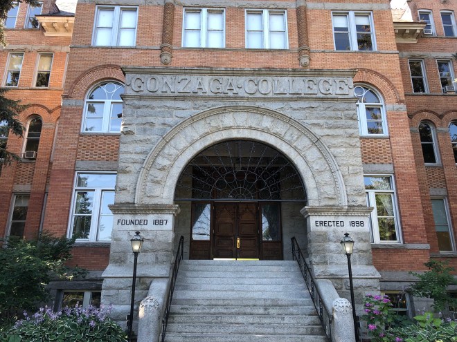 We hopped a short flight, in a prop plane no less, to Spokane where we would be touring Gonzaga College. The flight over the Cascades was gorgeous! We could see Mt Rainier in the distance and Mt Baker up close. There were plenty of glaciers with their turquoise tarns visible with some still frozen.