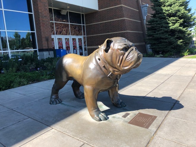 The campus also wasn’t as attractive as we had hoped it would be. Except for the original two buildings, the rest were kind of blah. There were pretty flower beds and water features, but those won’t be there most of the school year. Couple that with the fact Spokane was a bit of a dud and Gonzaga ended up being the second school we can cross off the list even though it was the International Studies and Arabic programs Jenny is currently interested in.