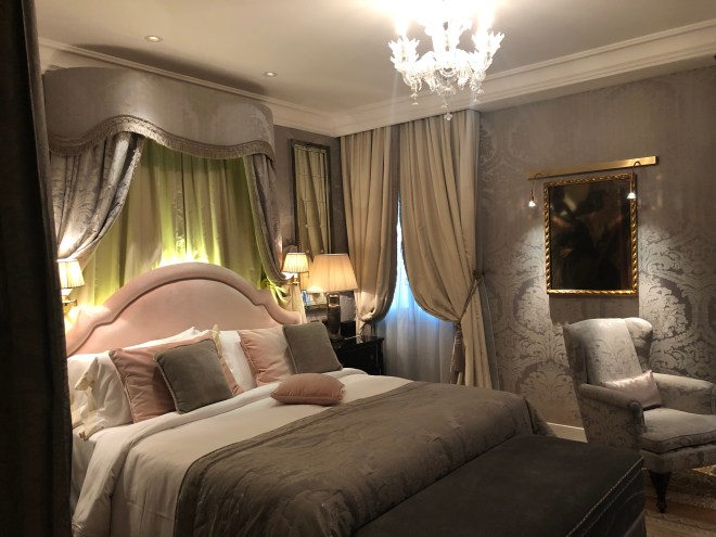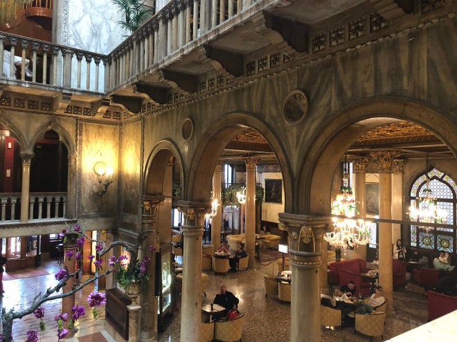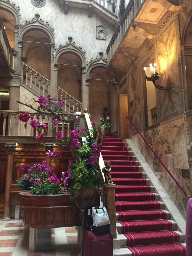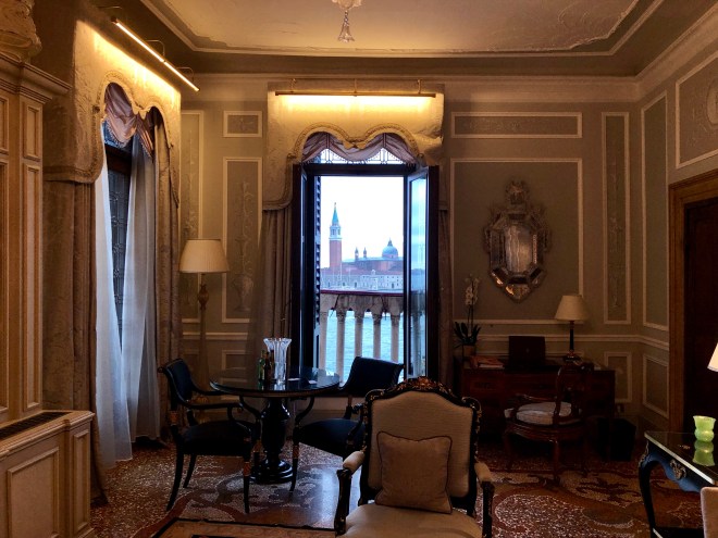 After freshening up, both Jenny and Billy proceeded to pass out. I, on the other hand, determined to get on Euro time as quick as possible, wandered the halls of this beautiful 14th century building, taking pictures, admiring the views and eventually settling down in one of the cozy chairs in the Bar Dandolo for a…Prosecco of course-when in Rome right?