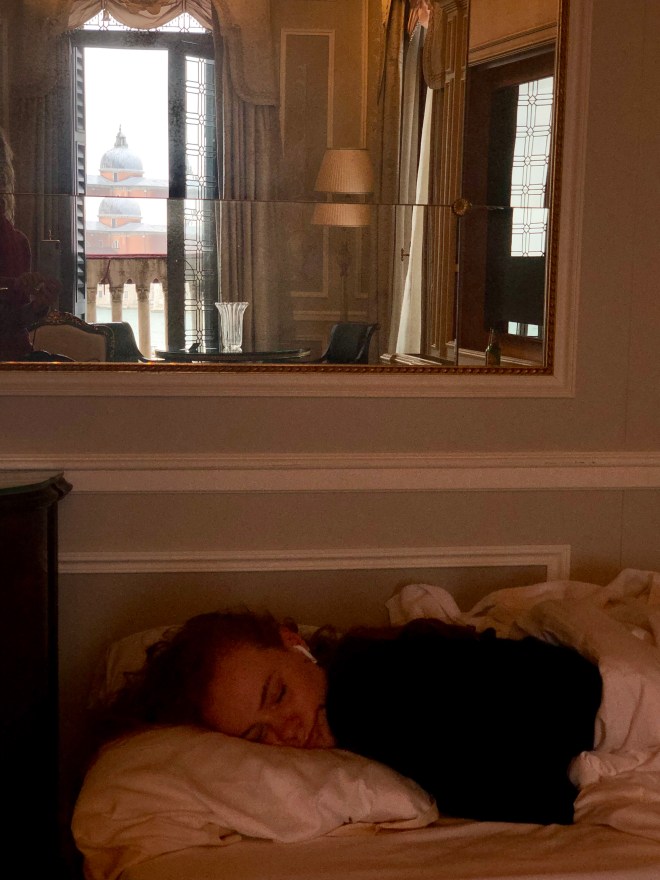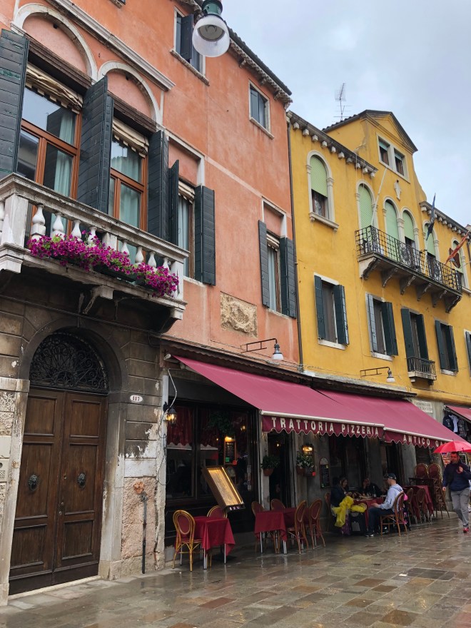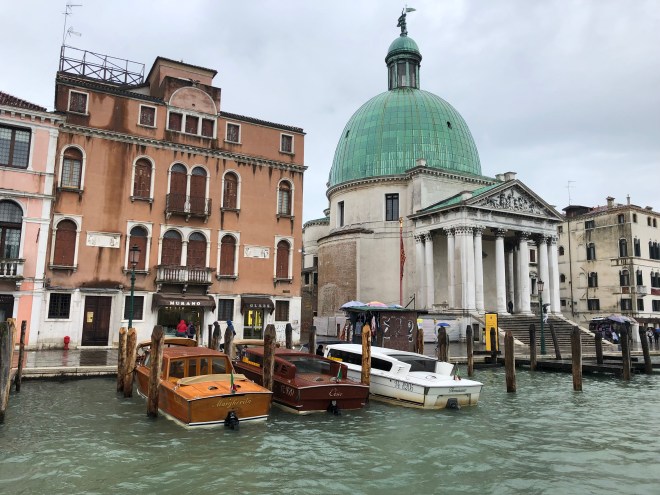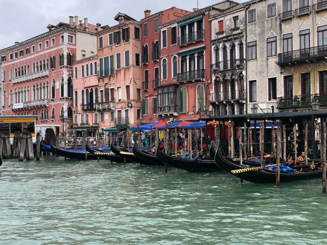 We were all exhausted so with the rain pouring down and the unfathomable amount of tourists moving about below our balcony, we settled in to the views of the lagoon and the Giorgio San Maggiore directly in front of us and listened to the few gondoliers serenading their passengers who braved the wet weather to take a ride. I counted eight cruise ships in port when we were coming in for a landing and Jenny saw one more off the other side of the plane so we knew it was going to be busy but holy cow it was insane.