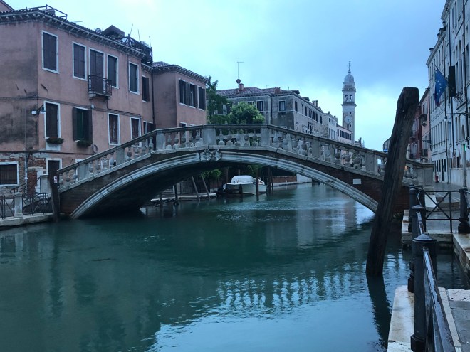 It wasn’t long after that Billy texted to say he was up and ready to go but Jenny hadn’t budged. I told him I would walk back and meet him and to let Jenny sleep and she could text us when she was up. Saint Mark’s Square was beginning to fill up by this time and I was thankful I had seen it empty. Billy and I retraced the route I had already taken and then continued on a bit further to the Accademia Bridge from where the view was even more spectacular-actually, I don’t think there is a bad view to be had in Venice.