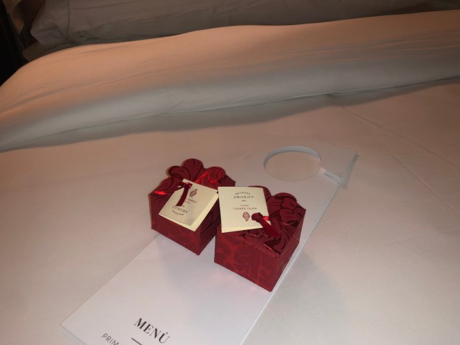 Once back at the hotel, we were welcomed back with two lovely boxes of chocolates left on our bed. We took one more look at the stunning view off our balcony, but it was only a matter of minutes before jet lag got the better of us and we all fell sound asleep.