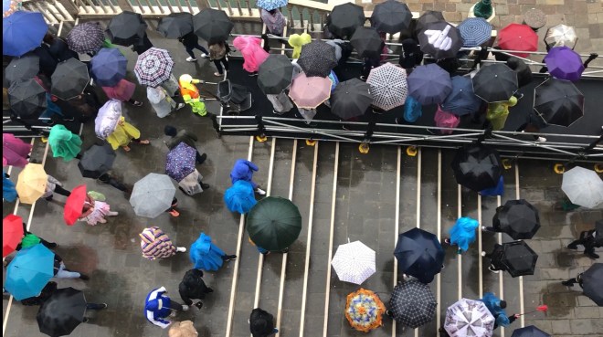 We could have lingered over lunch a little longer, but the skies were darkening and a quick look at our radar suggested we were in for some storms. Even though they have developed an ingenious system of umbrella gutters so the outside tables can still be used in the pouring rain, we opted to head back to the apartment for a nap for the birthday boy. It wasn’t even seconds after walking in the door that the clouds unloaded.