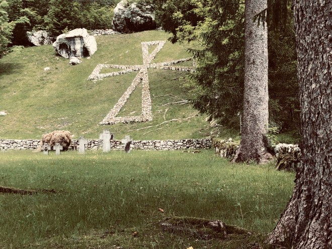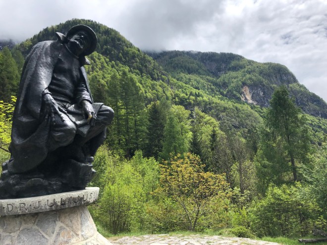 Another stop, on a point looking out back over the valley we had started to ascend from and a chance to honor the man who first explored and then wrote about this area of the Julian Alps, Dr. Julius Kugy.