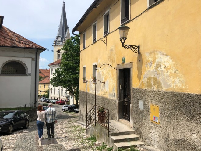 As Billy and I went downstairs to unload the last bits of the car, we decided we should try and find a place to buy a couple of beers. The building has a florist on the ground floor, so we went there to seek some information but I ended up asking a guy who looked to be about 25 if he spoke any English. His response was, “A little.” When I asked him where there was a grocery store, he offered to walk me there because he was headed in that direction. Turns out his little bit of English was an understatement as he was using terms like ratio and optimist. He pointed us in the right direction and gave us a recommendation for dinner. He could not have been nicer and was really the first truly friendly Slovanian we have encountered. Everyone else has been pretty unexcitable, with little expression to the point that they seldom returned a friendly smile.