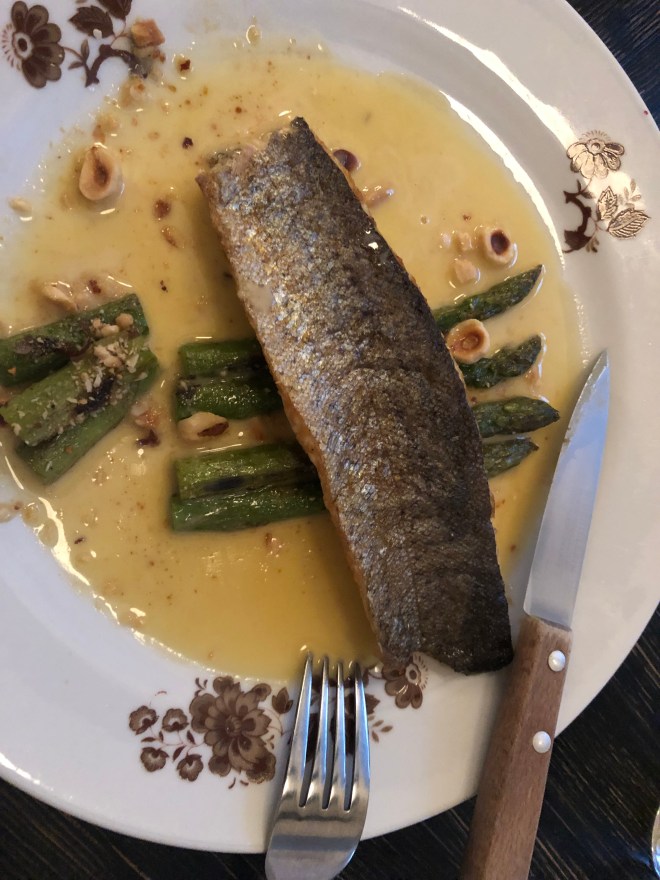 Wild asparagus that is matchstick thin and bitter-the chef was afraid we might not like it. Jenny ordered a second plate of it!