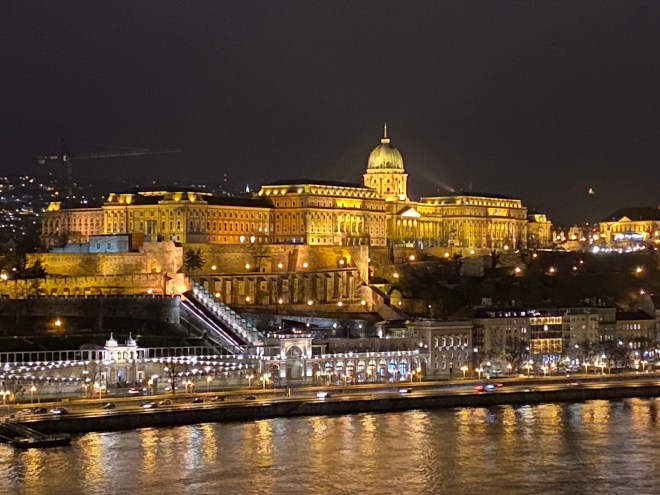 We arrived in the rain, with forecast of continued rain until we left so we figured it was going to be limited sightseeing. Our dinner was at Monk’s Bistrot, a very highly rated restaurant but when we entered at 7:00, we were the only ones there. The owner said he thought it was because of the coronavirus- that people were not going out, even though Hungry has yet to have a confirmed case. Nonetheless, our dinner was delicious and we enjoyed the views of the castle area lit up at night.