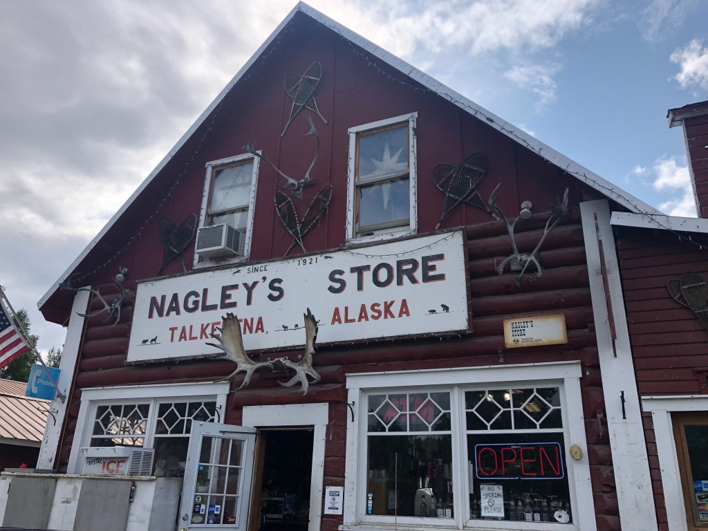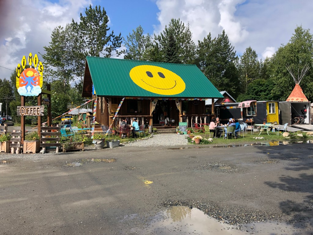 As soon as we rounded the corner of Main Street, Jenny was in love. There was a cute park, a poke bowl place, an ice cream shop and an adorable coffee shop (named Mimi’s cheese haus). The main street was lined with historic buildings turned into hip gift shops and yummy food joints. There were clearly tourists running about but nothing like we saw in Homer and where Homer felt kitschy, Talkeetna felt revitalized and real.
