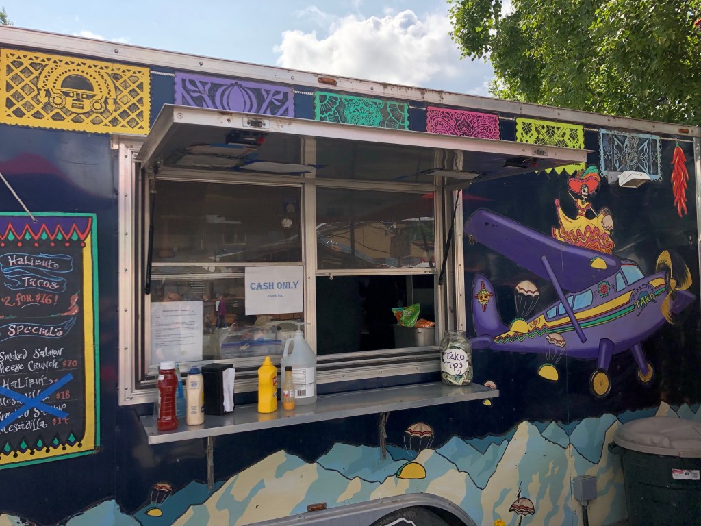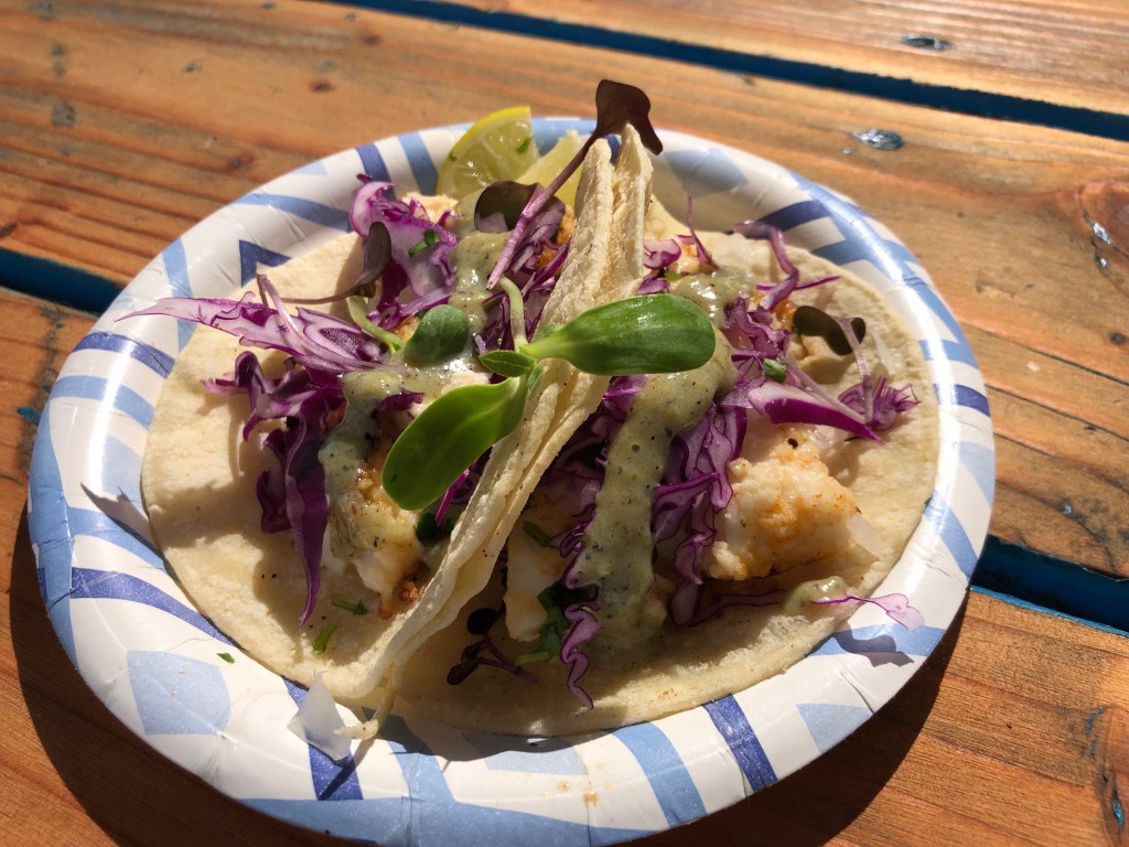 After doing some shopping, Jenny and I grabbed some delicious halibut tacos from a really cute taco truck. The only thing is they were fairly small so we were still hungry and decided to split a fried shrimp poke bowl, also delicious.