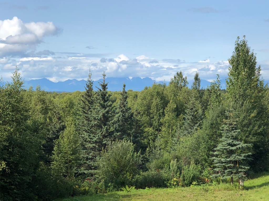 With 45 minutes before our tour started and the skies clearing a bit, I suggested to Jenny we take a quick drive to see if Denali was visible at all, and wouldn’t you know. Jenny had to point its summit out to me because it was hurting up above the clouds but because it is totally snow covered, it blended in perfectly with the clouds. It was super cool to see it that way.