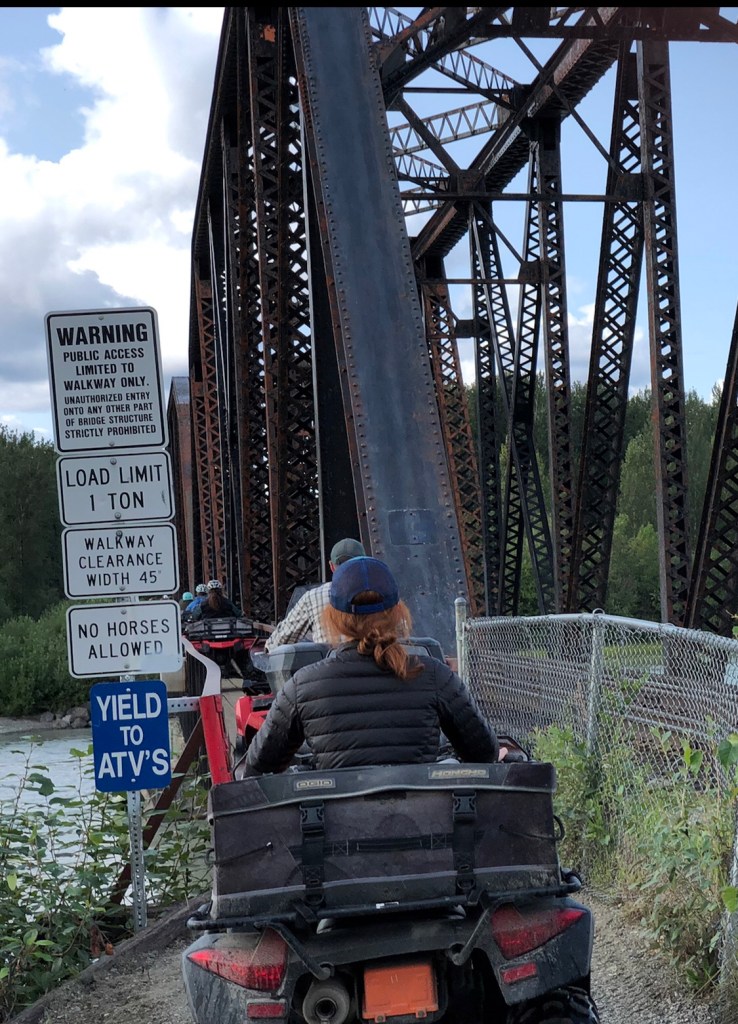 The tour started off driving through the streets of Talkeetna. We then had to go over a bridge that spans the river (the bridge being 38 inches wide, the ATV being 35 inches wide), we were basically bouncing off the sides!