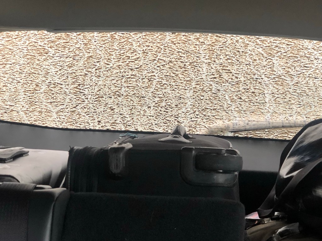 We made a quick stop for gas and ice. While I was parked, looking down reading the map, someone backed into us. ARGH! It turned out to be an Israeli national who had bought his own car while he was here. The rental car sustained minor damage and after checking with them on what we should do, we continued on down the road.