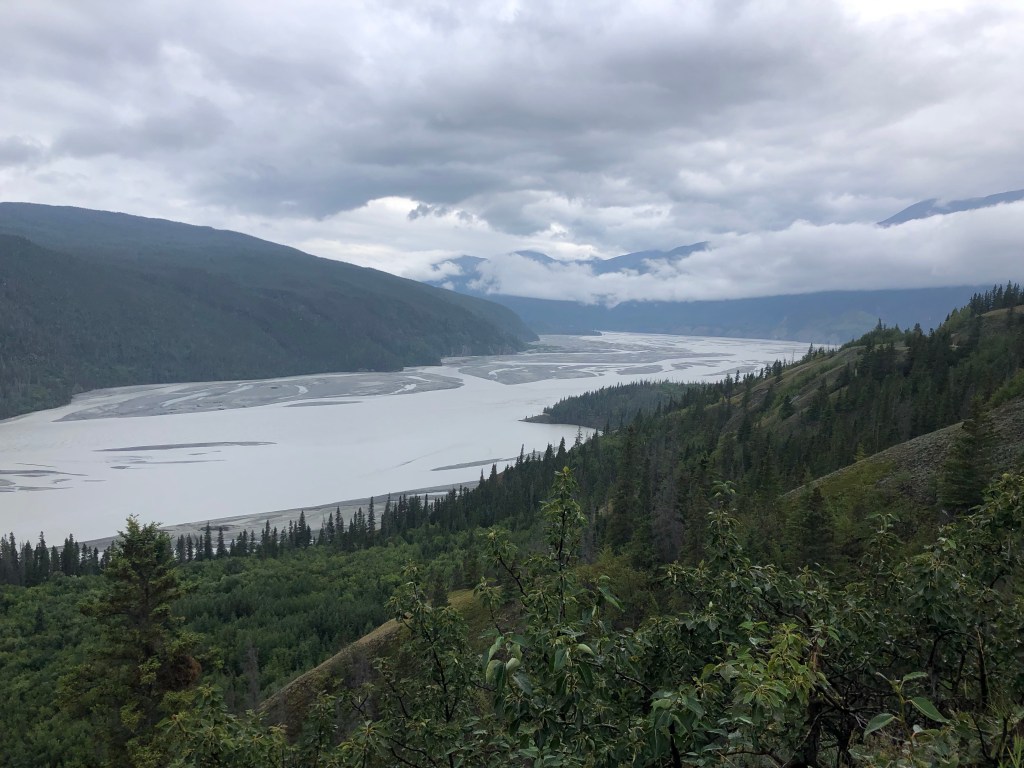 This morning we packed up and started the drive back towards Anchorage, with our destination being along the route at an area called Glacier View. Leaving Wrangell allowed for a bit more scenery as the ceiling wasn’t as low as it had been on our arrival day, so we were pleased for that. We again marveled at the fact we passed 3 campers and maybe 4 cars on the 60 mile park road – just so crazy!